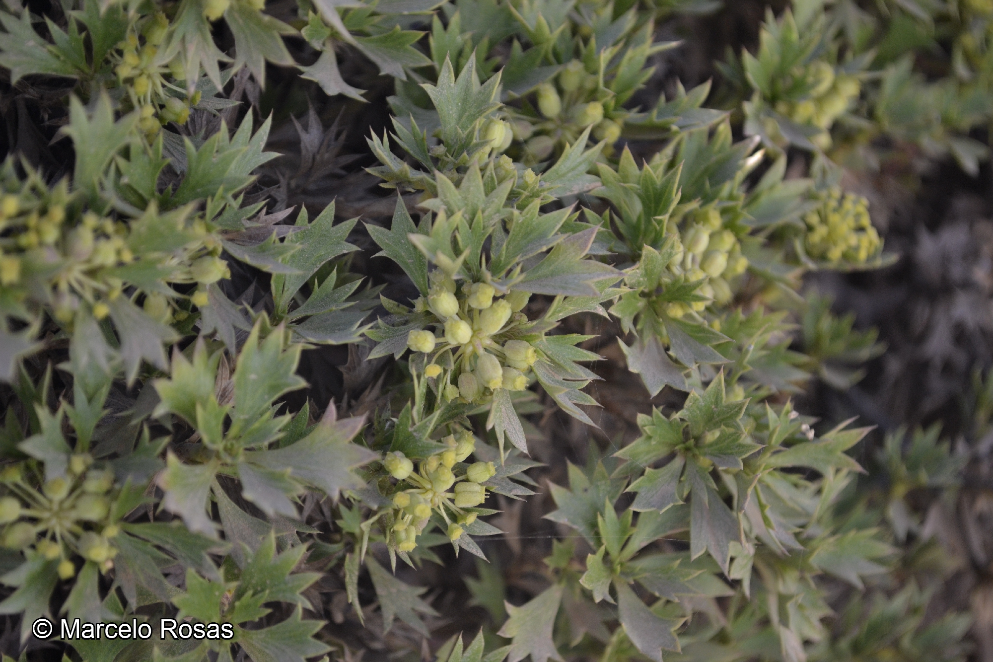 Fragosa spinosa Ruiz & Pav., Mulinum cuneatum Hook. & Arn., Azorella pectinata Phil., Mulinum clandestinum Phil.