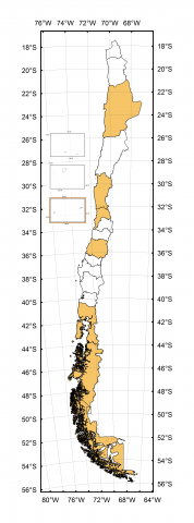Antofagasta (ANT), Coquimbo (COQ), Valparaíso (VAL), Maule (MAU), Los Lagos (LLA), Aysén (AIS), Magallanes (MAG), Juan Fernández (JFE)