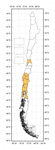 Valparaíso (VAL), Ñuble (NUB), Biobío (BIO), Araucanía (ARA), Los Ríos (LRI), Los Lagos (LLA)