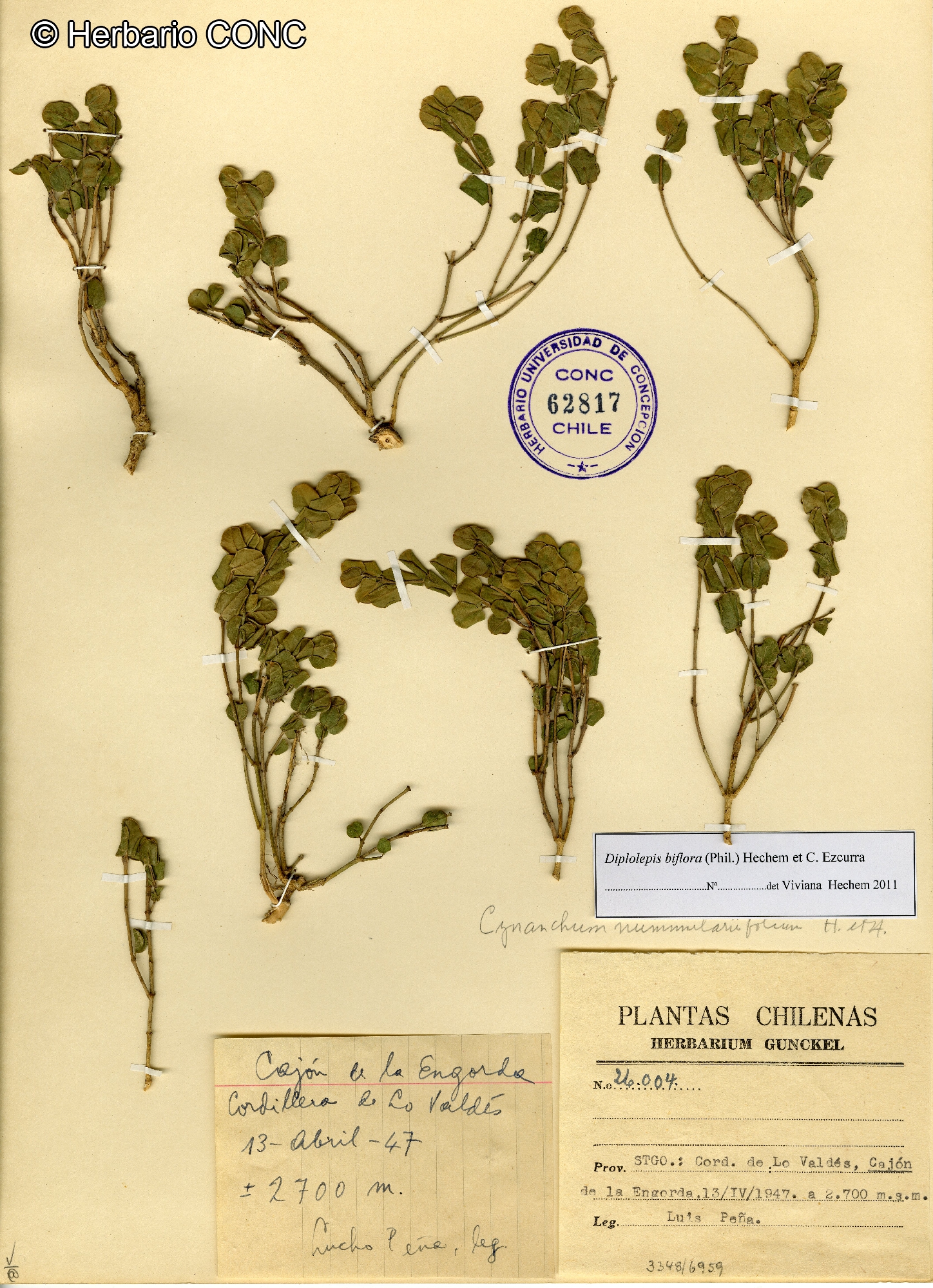 Diplolepis nummulariifolia (Hook. & Arn.) Liede & Rapini var. biflora (Phil.) Hechem & C. Ezcurra, Cynoctonum biflorum Phil., Cynanchum nummulariifolium Hook. & Arn. var. biflorum (Phil.) Reiche, Vincetoxicum biflorum (Phil.) Kuntze