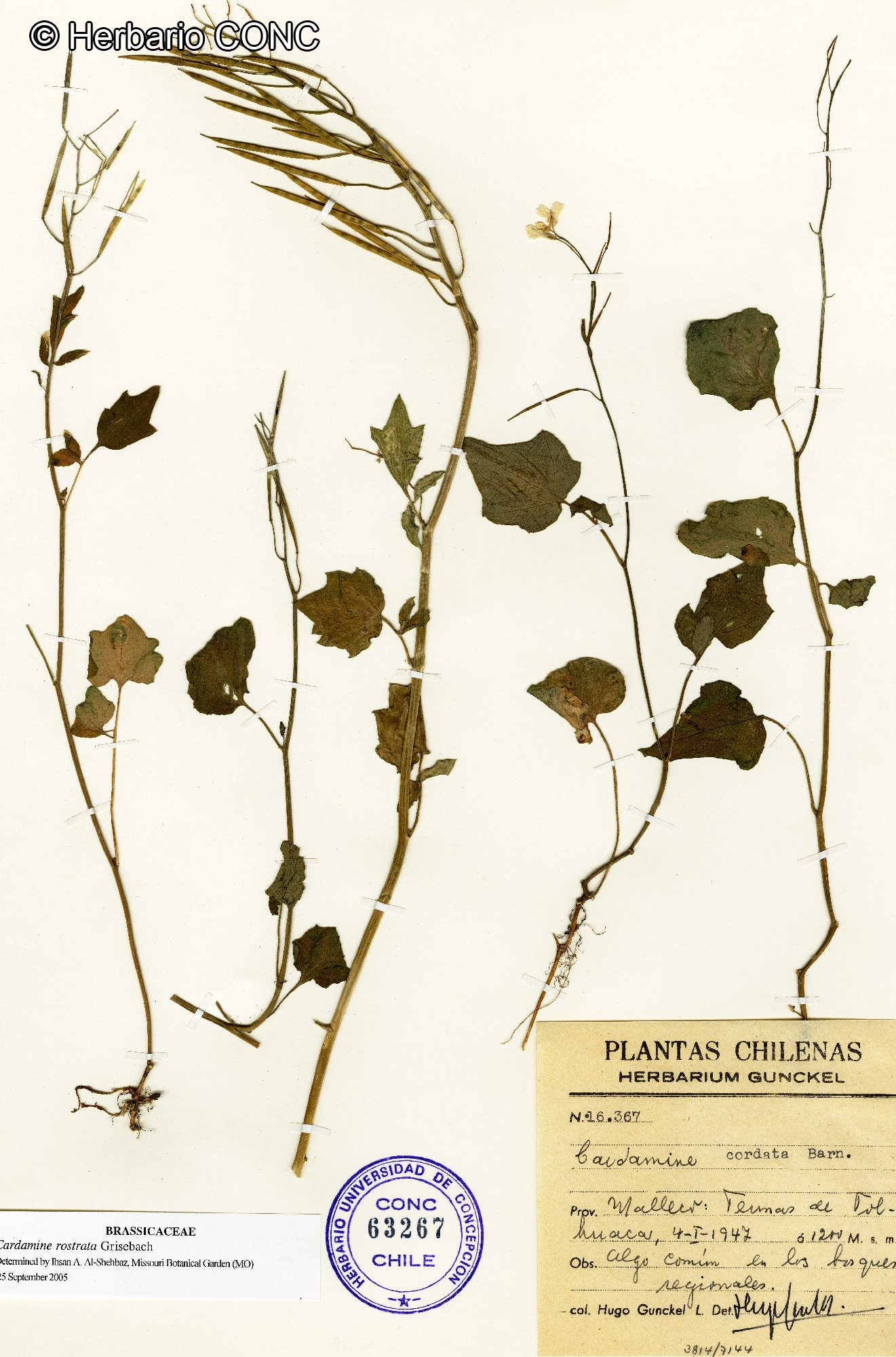 Cardamine rostrata Griseb. var. reniformis (Phil.) O.E. Schulz, Cardamine reniformis Phil., Cardamine lechleriana Steud.