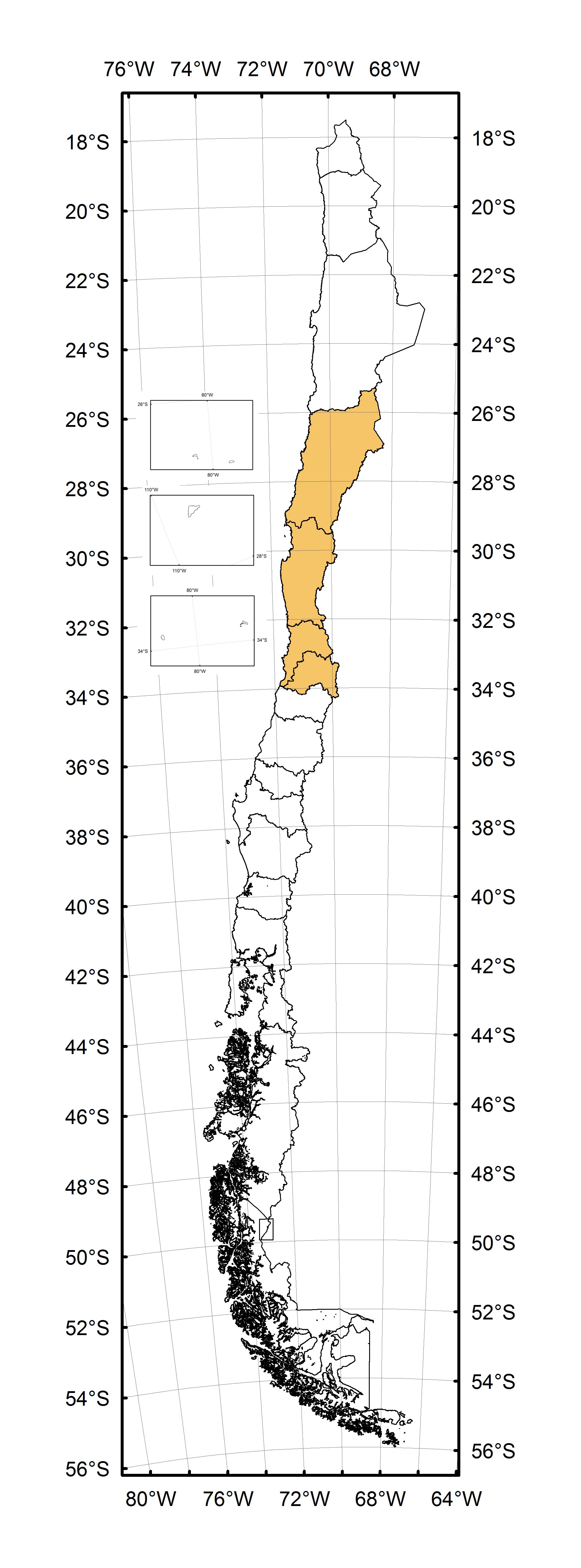 Atacama (ATA), Coquimbo (COQ), Valparaíso (VAL), Metropolitana (RME)