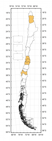 Tarapacá (TAR), Valparaíso (VAL), Metropolitana (RME), O'Higgins (LBO), Biobío (BIO)