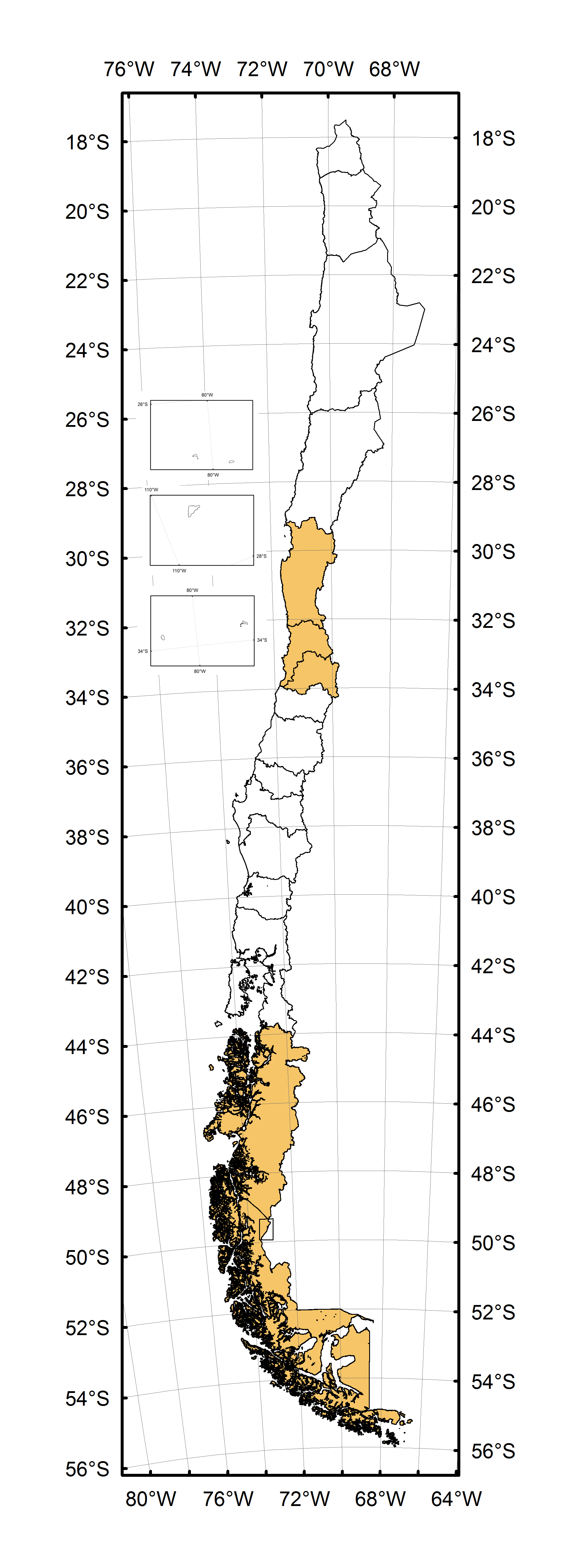 Coquimbo (COQ), Valparaíso (VAL), Metropolitana (RME), Aysén (AIS), Magallanes (MAG)